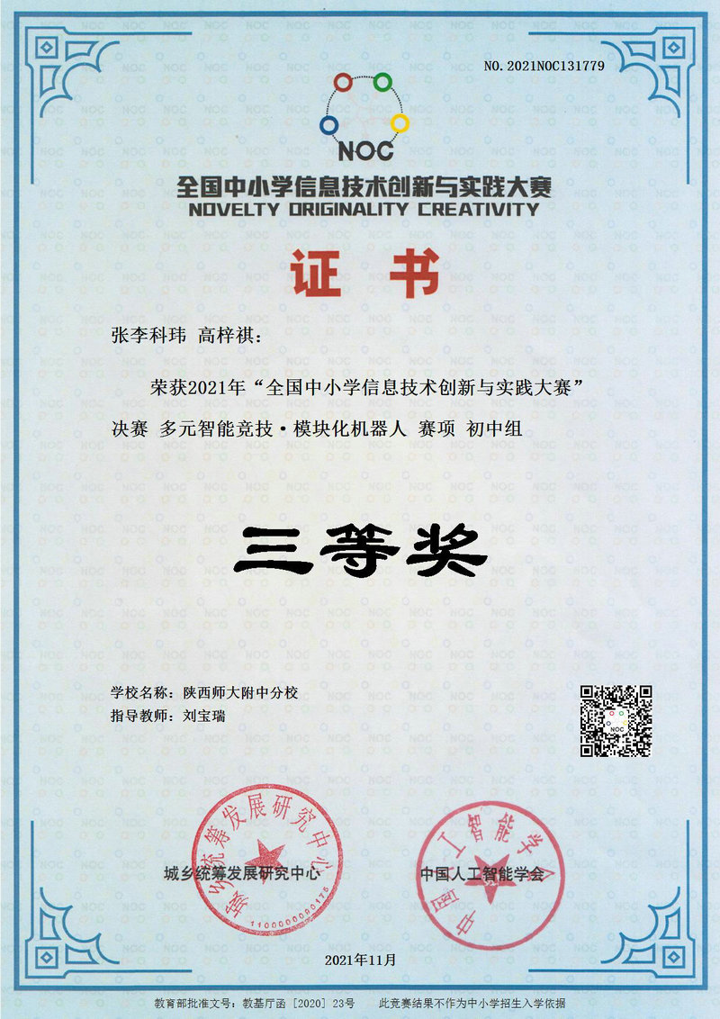 2021年11月13日-11月14日,由中国人工智能学会主办2021全国中小学信息技术创新与实践大赛线上赛(该赛事为教育部公布的37项面向中小学开展的全国性竞赛活动之一)成功举办。
