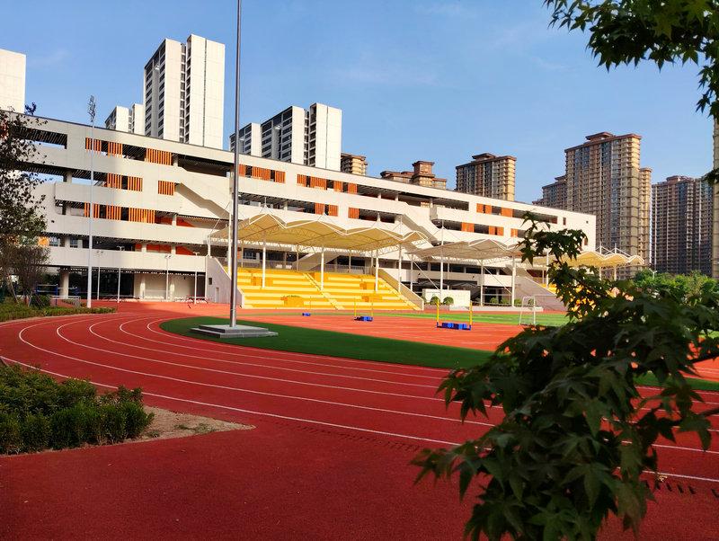 学校坐落于樱花二路与沣经三路东北角,毗邻陕西师范大学长安校区,占地45亩,建筑面积38004㎡,校内建设有教学楼、综合办公楼、礼堂、实验楼、图书馆、餐厅、功能部室、体育馆、游泳池、300米环形塑胶跑道运动场等基础设施,还有30多个团队活动室等现代化教学设施设备,各楼层、部室的采光、照明、新风系统、空调暖气、供水供电、信息传输以及消防等安全建设符合规范,为学生提供一流的学习和生活条件。