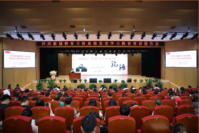 为深入学习贯彻习近平总书记在党史学习教育动员大会上的重要讲话精神,贯彻落实和开展党史学习教育工作,根据沣西新城教育卫体局党委统一部署,6月23日下午,在余爱东校长的带领下,我校选派代表教师前往沣西新城第二学校参加沣西新城教育卫体系统党史学习教育宣讲报告会。