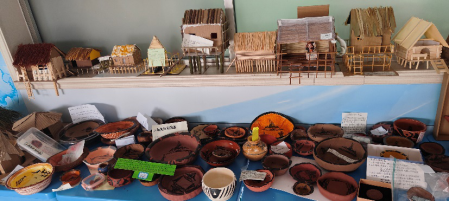 此次作业以学生学习的课程为依托,单元主题为“史前时期:原始社会与中华文明的起源”,学生围绕“百万年的人类史”“一万年的农业史”和“五千年的文明史”三大主题,利用课余时间,运用多种方式,收集黏土、石头、木头、橡皮泥等材料,通过精心设计和巧妙构思,制作出一件件精美且富有历史感的作品。