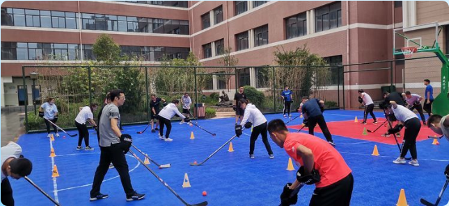 NHL陆地冰球,这个项目,全程必须佩戴护具,手持球杆,将球打进对方球门为目的,这个项目没有身体接触,却非常激烈,能促进学生的心肺能力,手脚配合能力,很适合中小学的开展