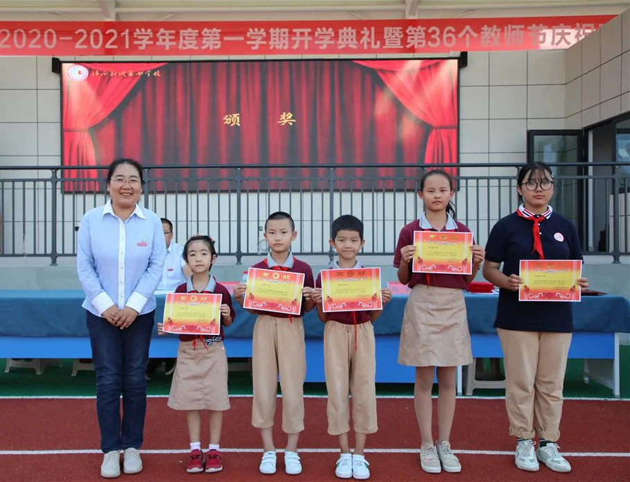 古韵书香的校园里,鲜艳的五星红旗迎风飘扬,纯真可爱的孩子们正齐聚操场,在这里期待着新学期的开学典礼!2020年9月10日下午,沣西新城第四学校2020-2021学年度第一学期开学典礼暨第36个教师节庆祝表彰大会在学校操场隆重举行。