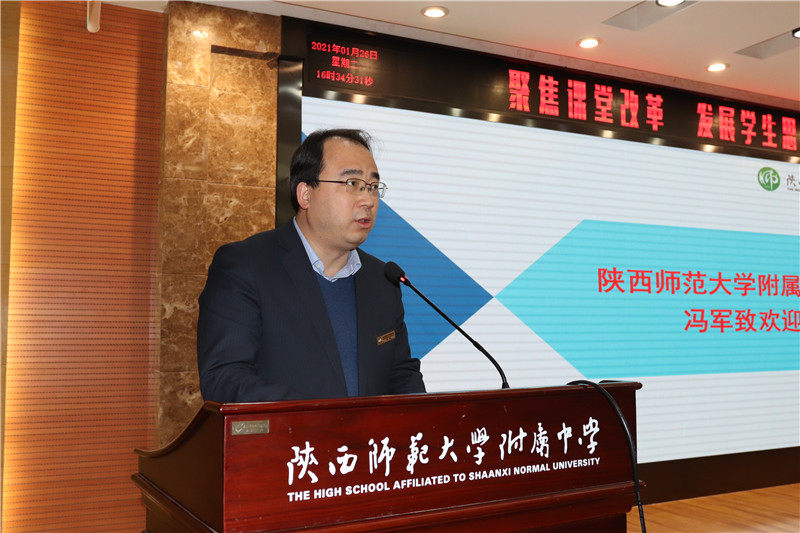 仪式开始,我校校长冯军作了热情洋溢的致辞。他分析了我校在课程与课堂教学改革中的优势,希望研共体能充分依托陕西师范大学的资源优势,在胡卫平教授的引领和指导下,积极开展教育实验,聚焦学生核心素养,把握课堂教学规律,构建课堂教学新样态,不断提升学校教育教学质量,助力基础教育高质量发展。