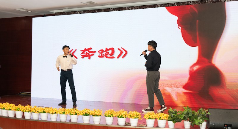 高三(3)班雷家驹、(5)班古千皓演唱《奔跑》,整个会场洋溢着青春的活力。