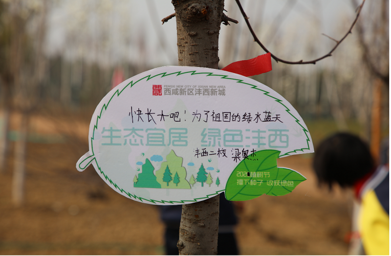 将想对小树说的话写下来,制作成独一无二的小树牌,等它变成了大树,“我的愿望也会跟着一起实现吧!”