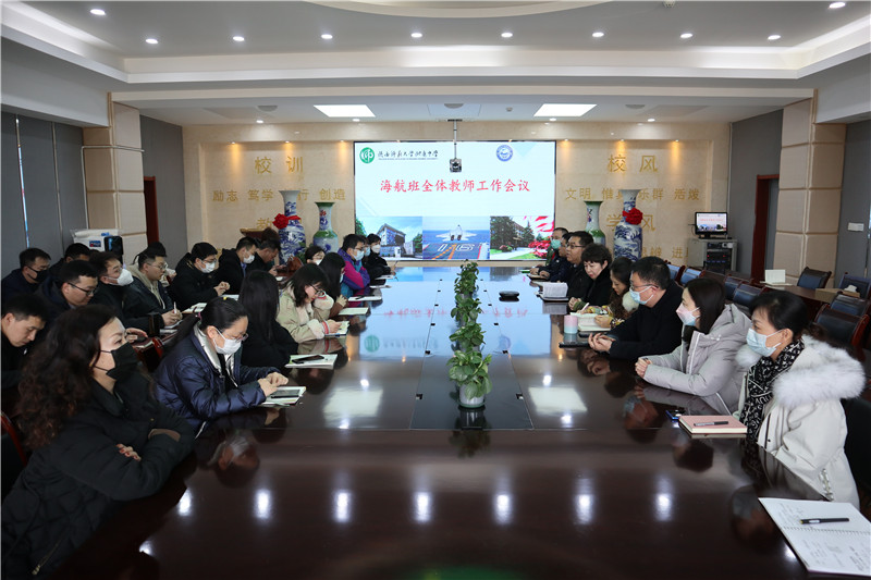 为进一步强化海航班教育教学管理,切实做好新学期各项工作的安排和部署,2月14日下午,我校召开了海航班全体教师工作会议,副校长高丽文,教研室主任董翼、政教处副主任鲍青青,高一、高二、高三年级海航班全体教师及教官参加会议。此次会议由教研室主任董翼主持。