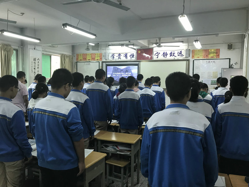 与此同时,我校全体师生在警报鸣响期间集体肃穆、默哀,警报间歇期,师生齐唱我校国文教员张寒晖先生创作的爱国歌曲《松花江上》;不仅如此,在本周一我校还开展了以“勿忘国耻·警钟长鸣·奋发图强·振兴中华”为主题的教育活动,初2020届2班成欣言为大家带来了《历史不能忘记,未来我们守卫》的国旗下演讲,活动中,全体同学集体聆听了以“九一八”为主题的爱国教育并学习了相关的历史知识。