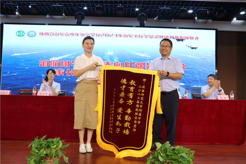奋楫扬帆新征程,砥砺前行再出发。陕西师大附中将传承发扬“爱国·模范”的优良传统,牢记使命,不负重托,继续高水平、高质量做好海军青少年航空学校的各项工作,全力将更多热爱海空、适合飞行、素质全面的学子输送到海军蓝色方阵,助力他们成为搏击长空、逐梦海天的海空雄鹰,为我国国防事业和海军建设发展作出新的贡献。