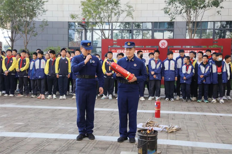演练结束后,为有效巩固师生消防安全技能,丰富学生消防体验,我校特邀沣西新城消防大队官兵,对师生进行消防安全技能培训。