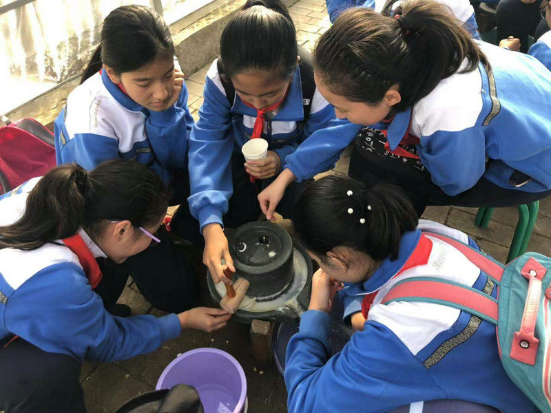 随后,研学活动正式开始。在生态农业种植园区,同学们了解了常见蔬菜的种植及土壤改良方法,听取了现代大棚种植科学技术和蔬菜的科普知识。走进田间地垄采摘各种时令蔬菜,零距离感受现代农业及大自然的魅力;在农业生活体验区,同学们积极参与,亲手磨制豆浆、制作花馍、轧染手绢,近距离学习食物和用品的加工过程,感受乡村生活,从制作的喜悦中获得满满的成就感;在奶牛养殖基地,同学们认真聆听了基地工作人员对奶牛的介绍,了解了奶牛和其它牛的区别,奶牛饲料的特点,奶及奶制品的相关知识等,参观了刚出生的小牛犊和成年奶牛养殖场,品尝了新鲜的牛奶和酸奶。